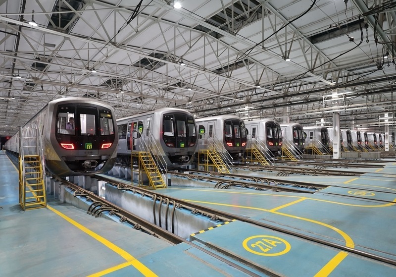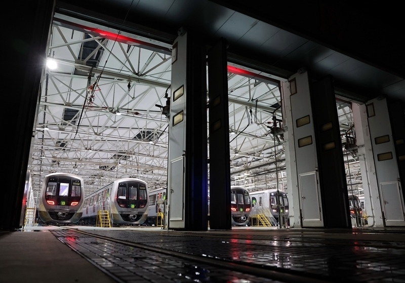 9月9日,地鐵列車(chē)在石家莊市地鐵西兆通車(chē)輛段整裝待發(fā)。