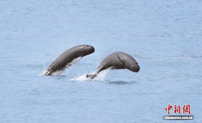 2020年8月,江豚在江西南昌東湖區(qū)揚(yáng)子洲鎮(zhèn)漁業(yè)村的“江豚灣”逐浪嬉戲。(資料圖)余會(huì)功 攝