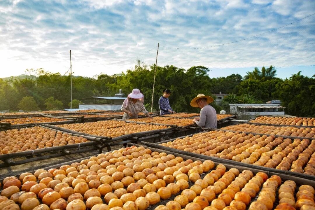 在廣東省梅州市平遠縣石正鎮(zhèn)中東村,村民正趁晴好天氣曬制柿餅。平遠縣供銷總公司通過合作社與農(nóng)戶簽訂收購合約,使石正柿花成為當?shù)剞r(nóng)民增收致富的特色產(chǎn)業(yè)。馮錫權(quán)攝(影像中國)