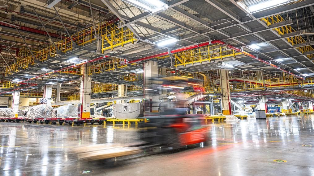 跟隨轉(zhuǎn)運(yùn)車,記者來到了建筑面積達(dá)75萬平方米的機(jī)場(chǎng)“工”字形轉(zhuǎn)運(yùn)中心。這里,“快點(diǎn)、快點(diǎn)”的催促聲與機(jī)器有節(jié)律的運(yùn)行聲形成交響,在2萬多臺(tái)自動(dòng)分揀設(shè)備和50多公里長傳送帶的支持下,工人們熟練地將數(shù)量規(guī)格不一的包裹抱起、分類、組合、打包,再拼裝出多個(gè)符合航空貨運(yùn)規(guī)格和形狀要求的大包裹。