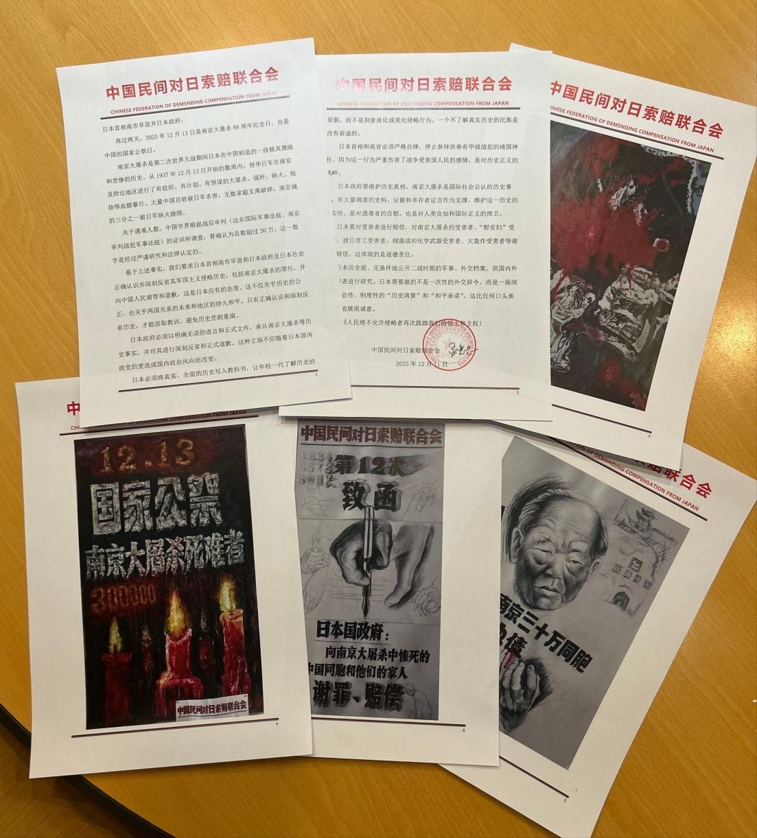 中國民間對日索賠聯(lián)合會成立于1992年,2006年在香港注冊,旨在促使日本政府向侵華戰(zhàn)爭中國受害者進行謝罪、賠償。該組織自2014年開始,每逢南京大屠殺死難者國家公祭日,必通過日本駐華大使館致信日本政府及其首相,要求日本政府就南京大屠殺謝罪、賠償,此次為第12次致信。(完)