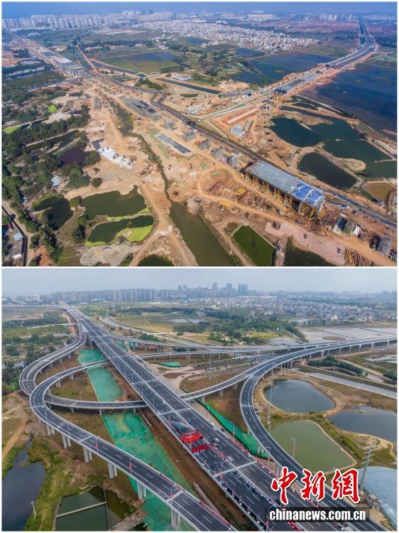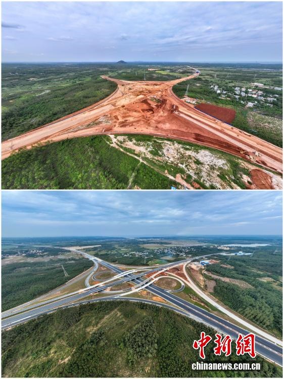 2025年12月18日,海南自由貿(mào)易港正式啟動(dòng)全島封關(guān)。近年來(lái),海南自貿(mào)港建設(shè)在利好政策帶動(dòng)下不斷刷新“自貿(mào)港速度”,一個(gè)個(gè)重大項(xiàng)目、重點(diǎn)園區(qū)拔地而起,直觀呈現(xiàn)海南自貿(mào)港的蓬勃生機(jī)。這里正成為中國(guó)對(duì)外開(kāi)放的新前沿、互利合作的新熱土和推動(dòng)經(jīng)濟(jì)全球化的新引擎。上資料圖為2021年2月6日正在建設(shè)中的G15沈海高速公路海口段項(xiàng)目海秀互通,下資料圖為2022年12月28日G15沈海高速公路海口段建成通車(chē)。(拼版圖,無(wú)人機(jī)照片)