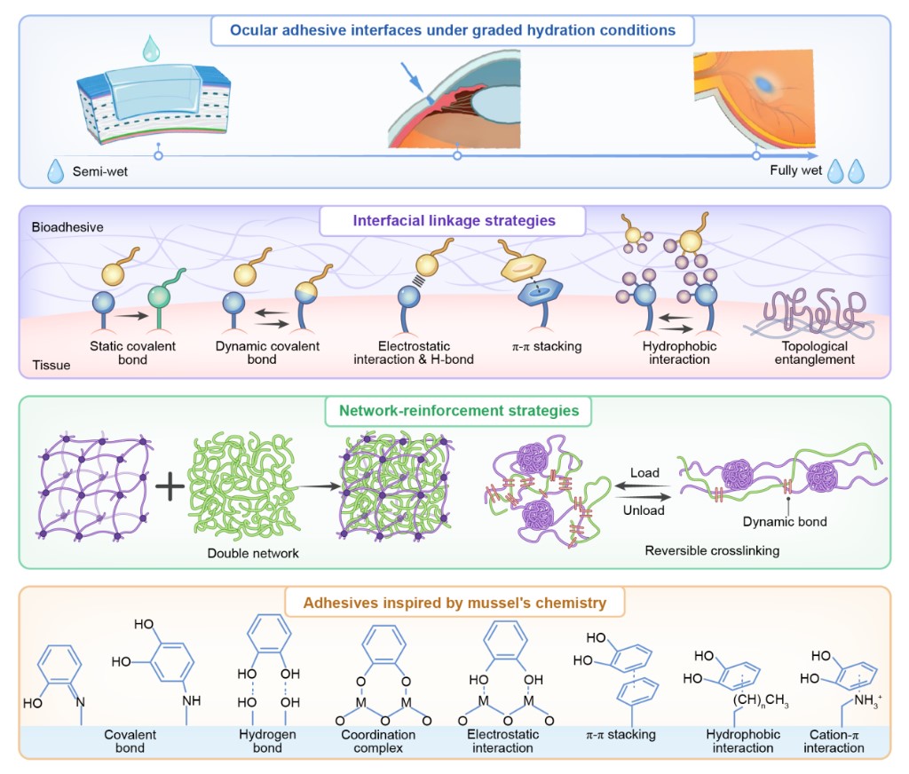 研究團隊介紹,眼科粘合材料分為眼表粘合和眼底粘合兩大類,針對性解決不同眼部區(qū)域的治療需求。對于角膜等眼表疾病,“生物膠水”已展現(xiàn)出亮眼潛力,能實現(xiàn)無縫線角膜移植,填充修復(fù)大范圍角膜缺損,即便在濕潤、滲血的復(fù)雜創(chuàng)面上也能即時封閉,可大幅拓展眼表修復(fù)的適用場景,提升治療效果。