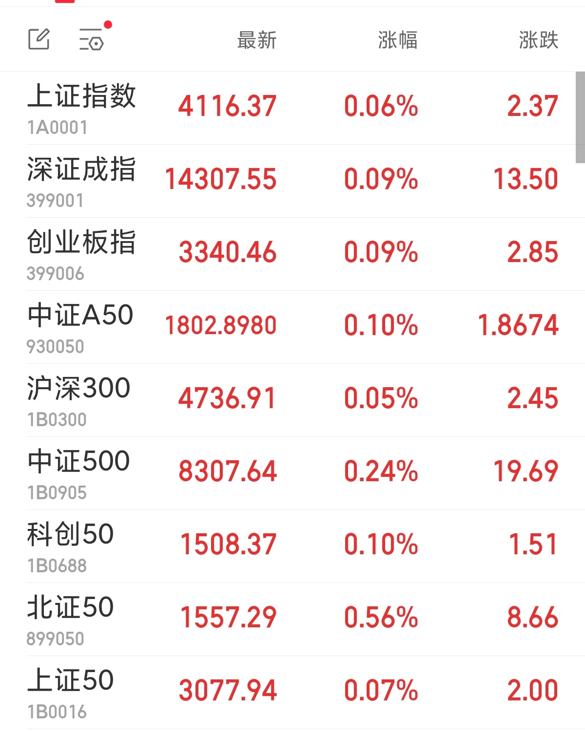 中新經(jīng)緯1月20日電 周二,A股三大指數(shù)集體高開。上證指數(shù)漲0.06%,報4116.37點;深證成指漲0.09%,報14307.55點;創(chuàng)業(yè)板指漲0.09%,報3340.46點。
