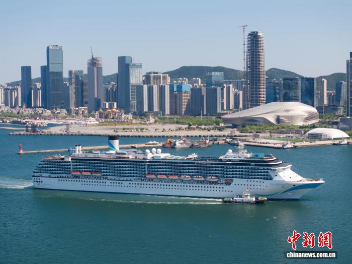 圖為郵輪駛過大連東港商務區(qū)。宮梁亮 攝