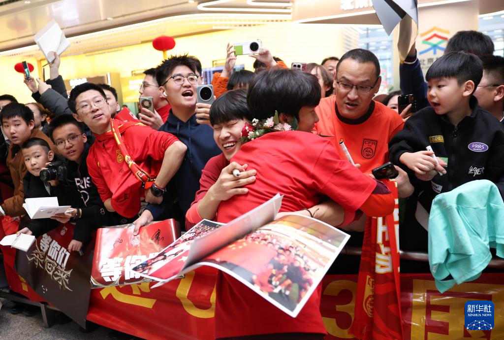 1月26日,大批球迷在機(jī)場(chǎng)歡迎中國(guó)隊(duì)歸來(lái)。