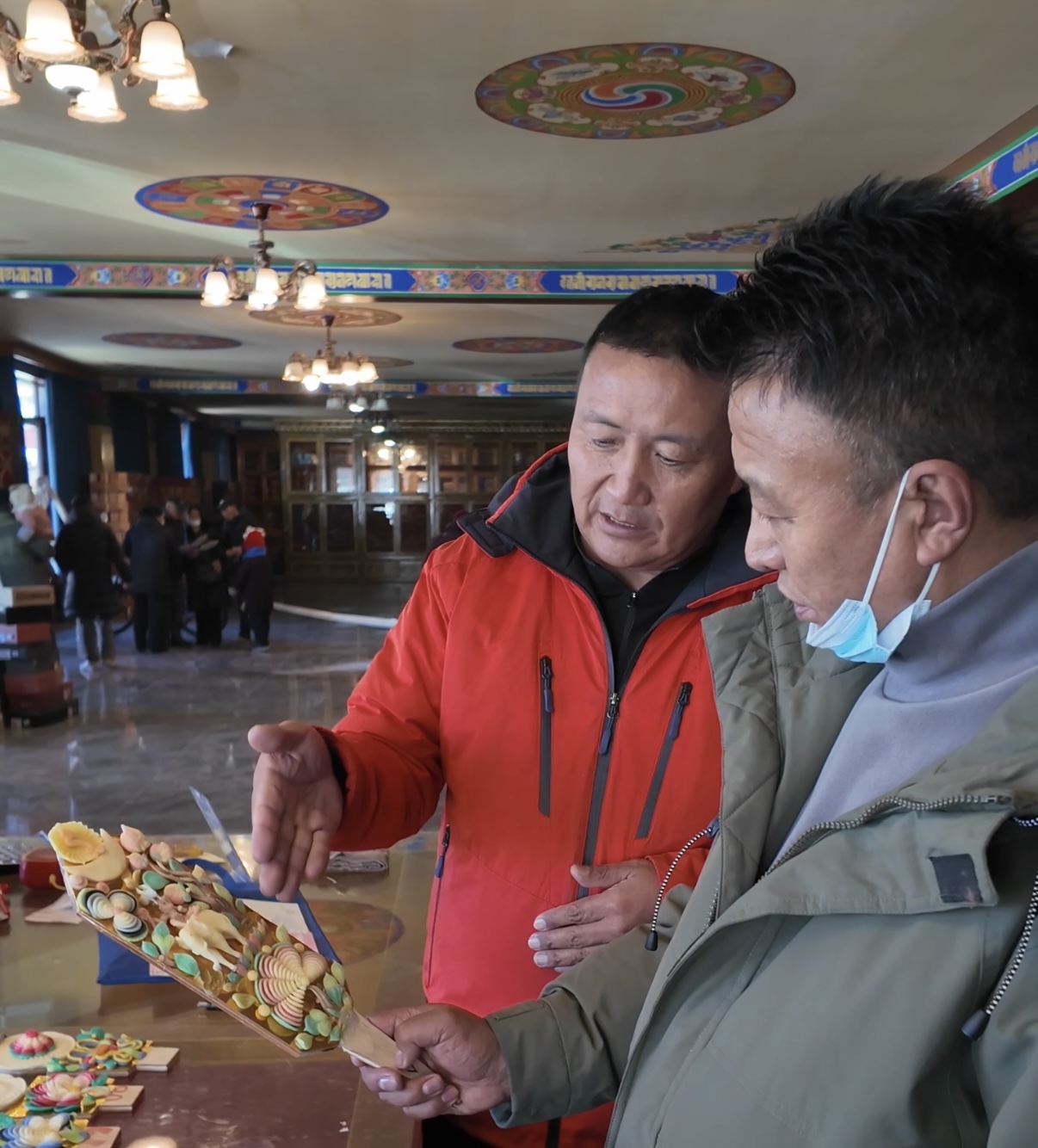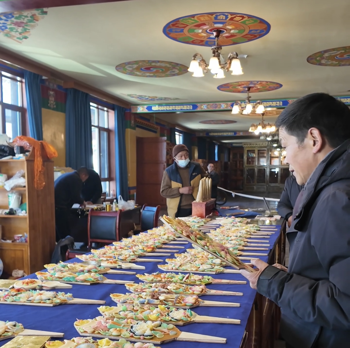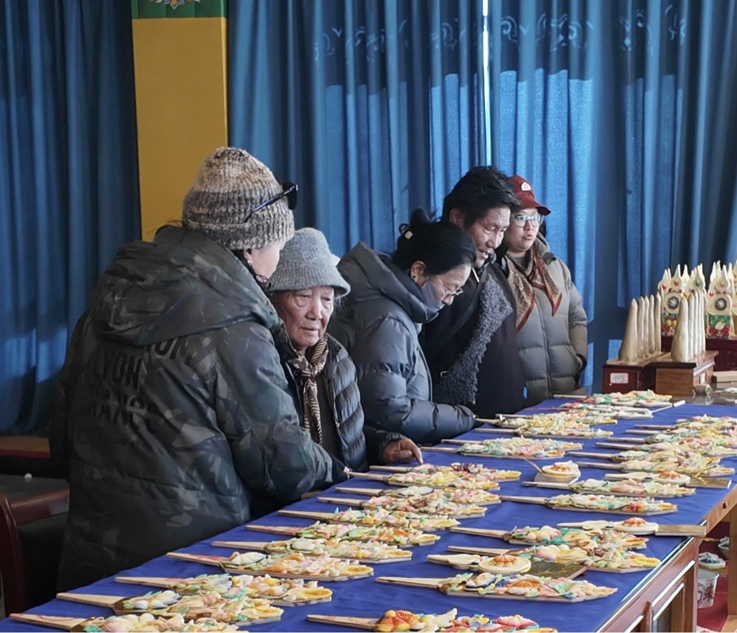 “哪種圖案寓意更好?”“‘八吉祥徽’和‘和睦四瑞’能搭配嗎?”問題接連不斷,倫珠忙得幾乎腳不沾地。他介紹,合作社于2025年11月成立,匯集了30多位手藝精湛的老師傅。為應(yīng)對新年需求,大家提前一個(gè)月便開始制作,沒想到開售僅3天,1500多對酥油花便已售出,備貨幾乎告罄。
