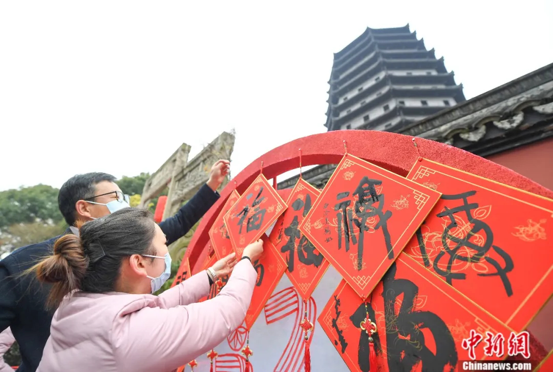 2026年1月18日,重大歷史題材電視劇《太平年》全球啟航發(fā)布會(huì)在浙江杭州錢王祠內(nèi)舉行。圖為游客在錢王祠外拍照留念。中新社記者 曹丹 攝