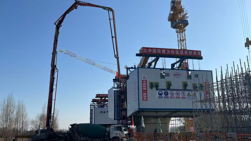 在中鐵二十一局集團有限公司所建項目處,機器轟鳴與焊花飛濺交織,鋼鐵巨臂緩緩運轉(zhuǎn),巨大的橋墩向遠方延展開來。