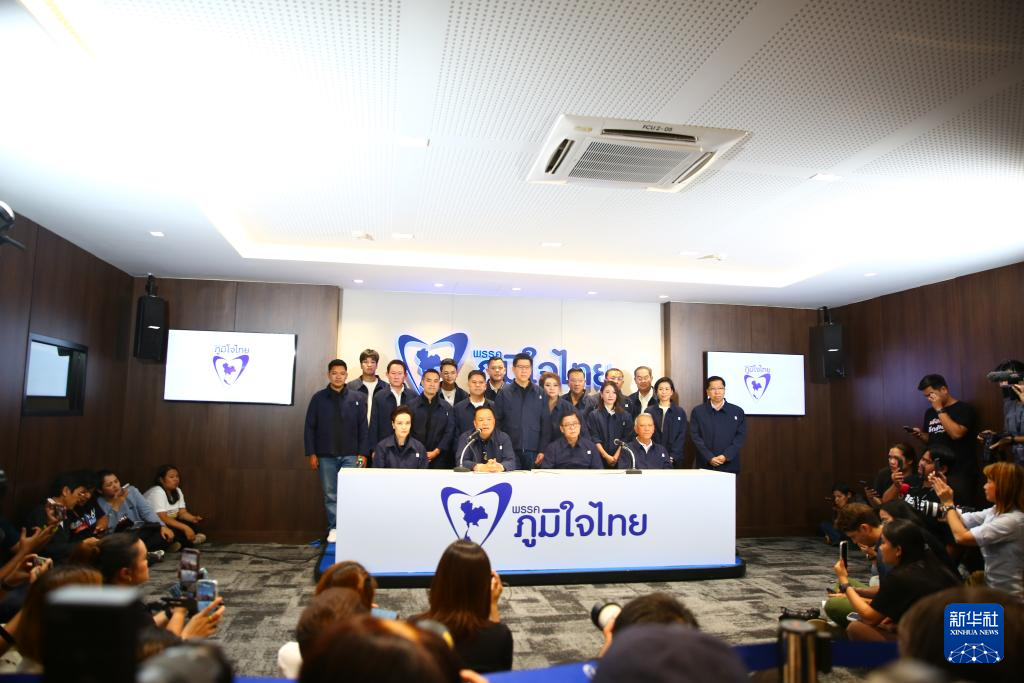 2月8日,泰國看守政府總理、自豪泰黨黨首阿努廷(前左二)在曼谷出席新聞發(fā)布會。新華社記者 萬后德 攝
