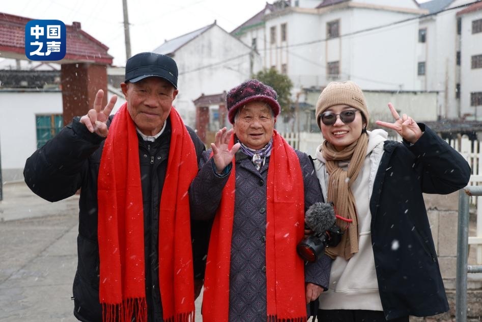 飄雪的冬日,陳真又一次如約來(lái)到上海金山嘴漁村,給她熟悉的“老朋友們”拍照。幾對(duì)相守幾十年的老夫妻舉著紅彤彤的大福字,圍著耀眼的大紅圍巾,笑聲朗朗。“與雪共白頭”的浪漫,陳真拍了一上午,也跟著老人們笑了一上午。