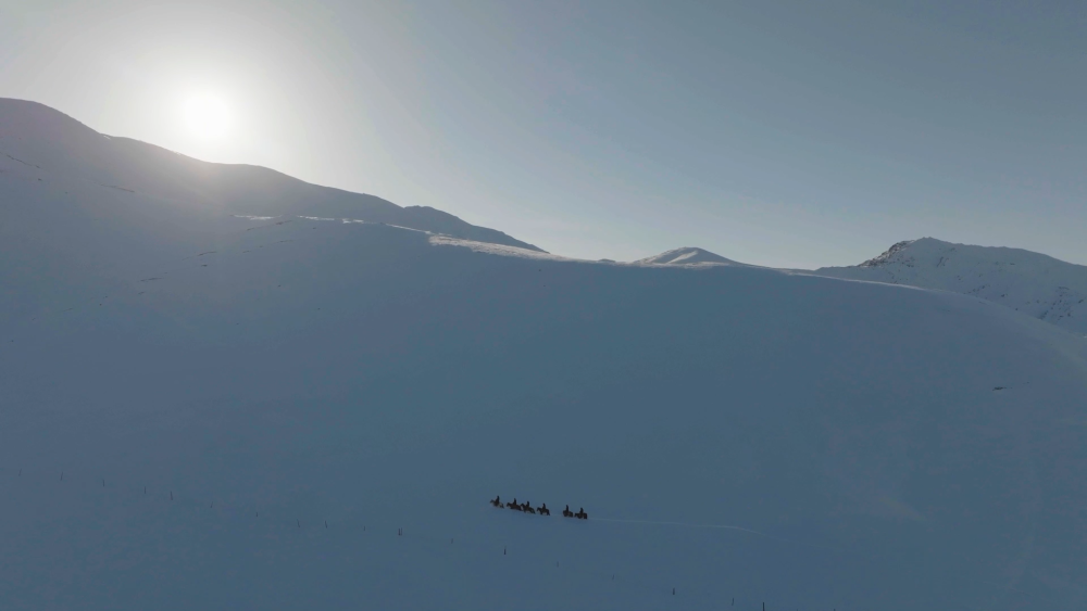 在如刀的風(fēng)中和遼闊的雪原,一群年輕的騎士策馬前行,即使臉被風(fēng)吹紅,手腳凍開裂,也沒有停下腳步。