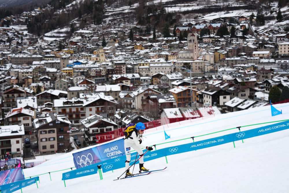 2026年2月21日,次旦玉珍在米蘭-科爾蒂納冬奧會滑雪登山混合接力的比賽中。新華社記者 顏麟蘊 攝