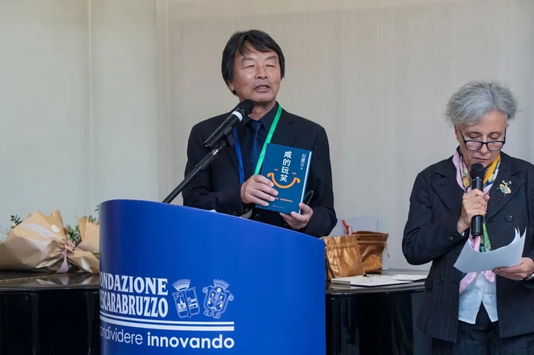 2026年2月20日,劉震云在意大利國(guó)際南北文學(xué)獎(jiǎng)的頒獎(jiǎng)儀式上講話,旁邊為其作品意大利語(yǔ)翻譯李莎(Patrizia Liberati)。