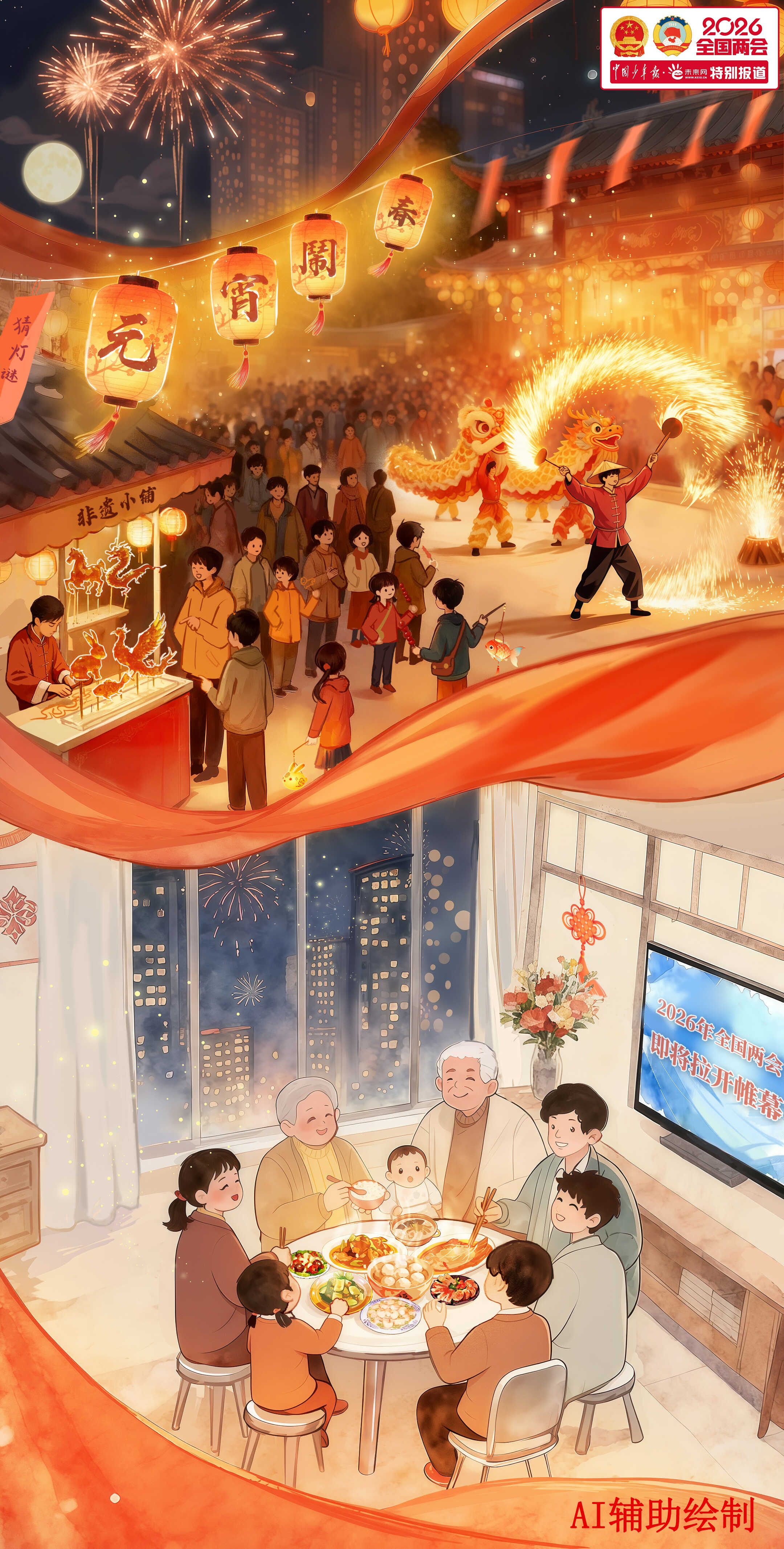 當(dāng)一盞盞花燈點(diǎn)亮城市街巷,當(dāng)一碗碗湯圓、元宵端上萬家餐桌,2026年元宵佳節(jié)如約而至。燈火璀璨處,有孩童提燈嬉鬧的歡聲笑語,有長(zhǎng)輩圍爐話家常的其樂融融,更有無數(shù)奮斗者收拾行囊、即將奔赴遠(yuǎn)方的身影。而在北京,一場(chǎng)備受關(guān)注與期待的春日盛會(huì)——全國(guó)兩會(huì),也將在明天(3月4日)拉開帷幕。
