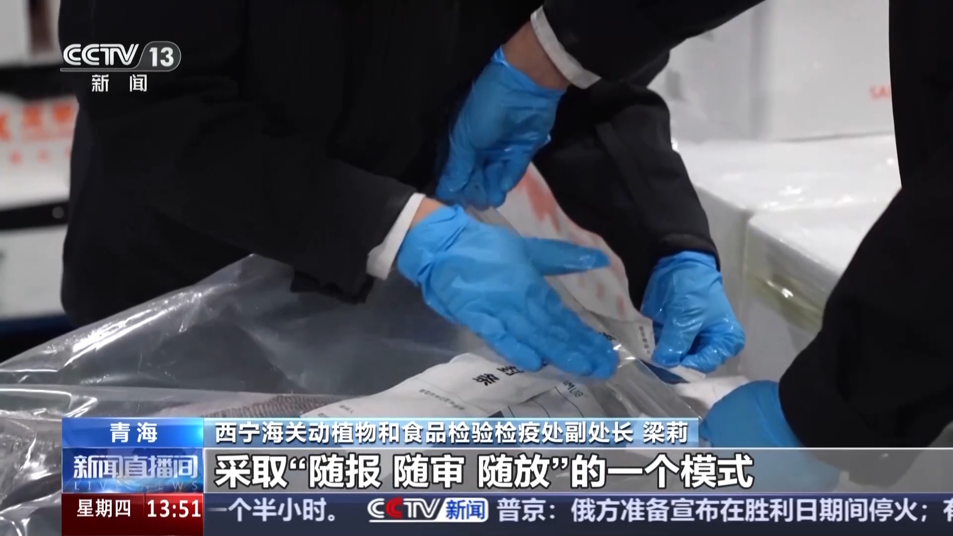 西寧海關(guān)動(dòng)植物和食品檢驗(yàn)檢疫處副處長 梁莉:針對冷水魚鮮活易腐的特點(diǎn),我們優(yōu)通關(guān)、暢通道,采取“隨報(bào)、隨審、隨放”的模式,壓縮1/3的檢驗(yàn)檢疫時(shí)長。我們依托飛機(jī)“腹艙帶貨”的模式,青海冷水魚可以在24小時(shí)之內(nèi)到達(dá)東南亞市場。