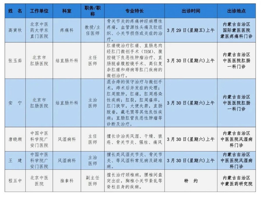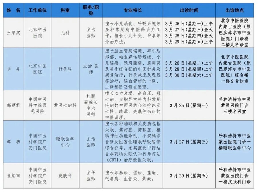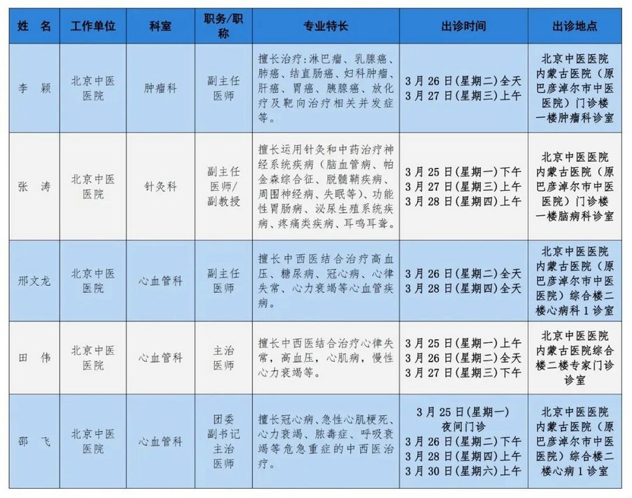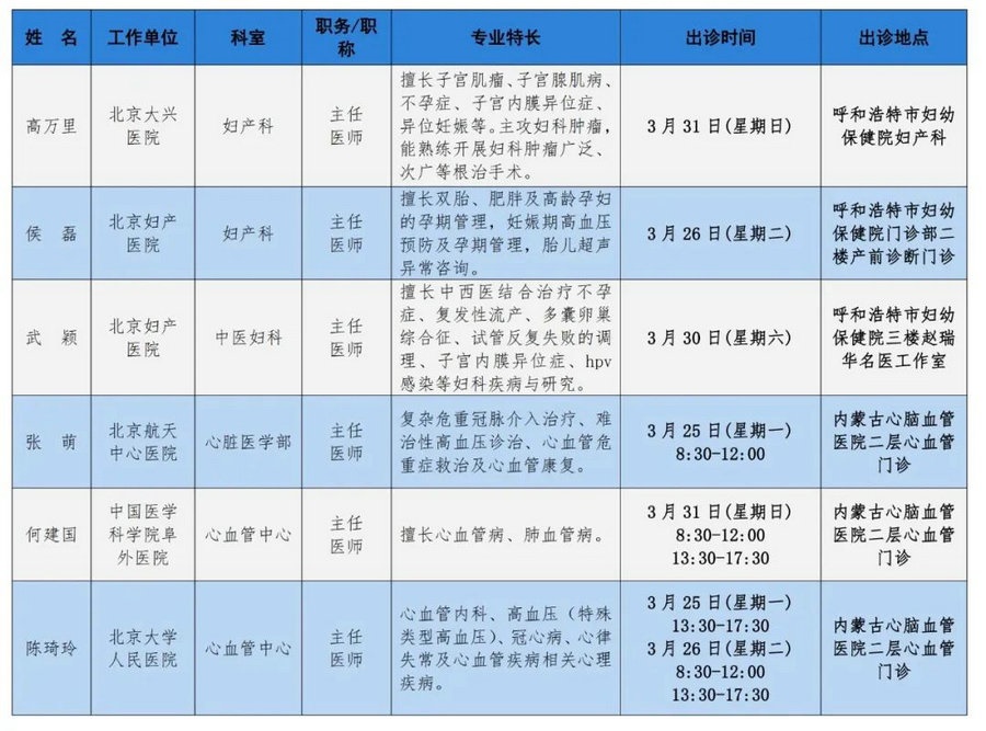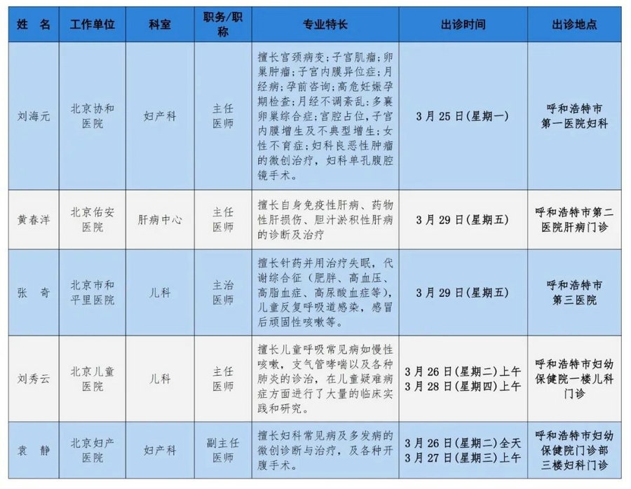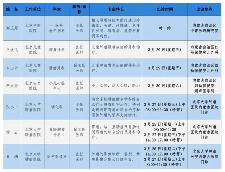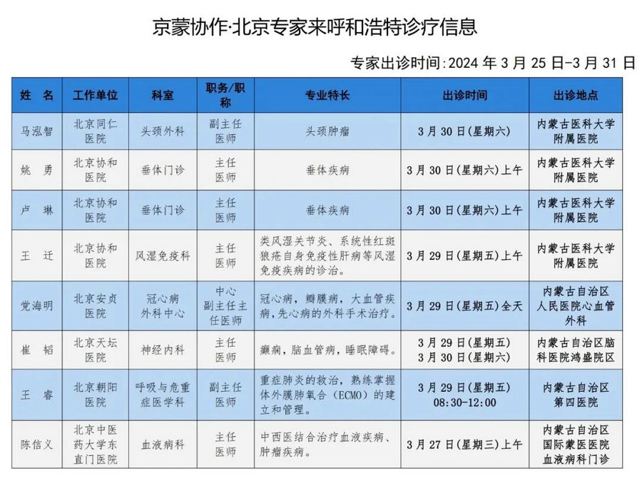 “京蒙協(xié)作”|本周北京相關(guān)協(xié)作醫(yī)院專家來(lái)呼和浩特出診安排