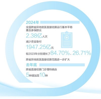 2024年,全國(guó)跨省異地就醫(yī)直接結(jié)算惠及參保群眾2.38億人次,成績(jī)來(lái)之不易。我國(guó)跨省流動(dòng)人口數(shù)量大,如何更好滿足人民群眾的異地就醫(yī)需求,是一道必答題。近年來(lái),各地各部門(mén)著力打通異地就醫(yī)的難點(diǎn)堵點(diǎn),推出一系列實(shí)實(shí)在在的舉措,覆蓋范圍不斷擴(kuò)大、慢特病病種進(jìn)一步擴(kuò)圍、經(jīng)辦服務(wù)持續(xù)優(yōu)化,人民群眾的獲得感不斷增強(qiáng),笑容更多、心里更暖。