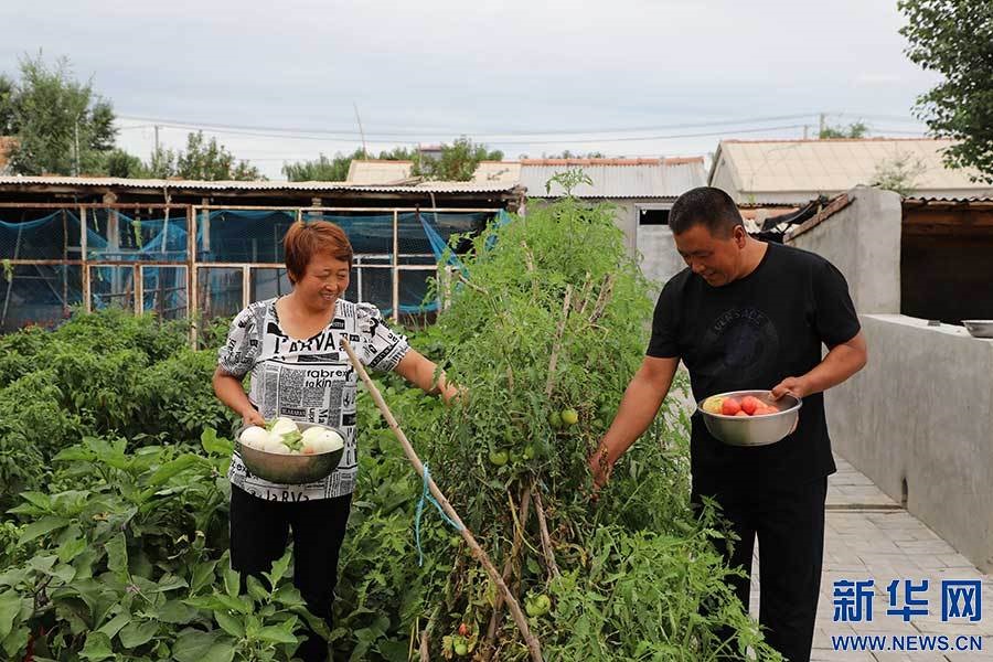 姜玉龍、宋朋艷夫婦在菜園中收獲勞動果實(shí)。新華網(wǎng)發(fā)