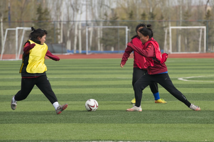 內(nèi)蒙古中學(xué)生女子足球隊(duì)員選拔現(xiàn)場(chǎng)