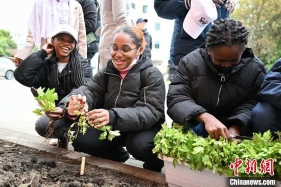 蹲在苗圃邊,用小鏟子先松松土,挖出個小坑,再把一株艾草幼苗小心翼翼地種入土中,最后覆蓋上泥土......24日下午,在同濟(jì)大學(xué)南校區(qū)一塊小園圃里,來自55個國家的百余名留學(xué)生們一起種下艾草、杜仲等中草藥,零距離感受中醫(yī)文化的奇妙之處。