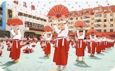 5月30日,甘肅省定西市安定區(qū)中華路幼兒園的小朋友們在表演節(jié)目,在快樂的氛圍中迎接兒童節(jié)。 王克賢攝(新華社發(fā)) |