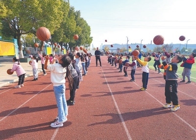 陶新明就在縣第五小學跟崗學習兩年,帶回了先進的教學模式和理念?!霸诮搪?lián)體支持下,我們校區(qū)目前已有兩名專職體育老師。我們在課后托管時間開設社團課,為有愛好和特長的學生系統(tǒng)地開設籃球、足球課,引導幫助他們全面發(fā)展?!碧招旅髡f。