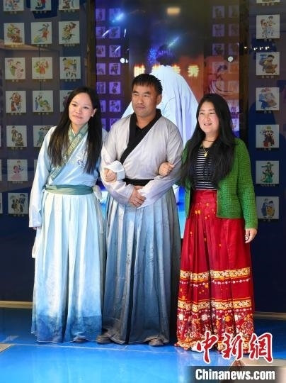4月3日,北京華文學(xué)院“中不中文培訓(xùn)研修班”的3名不丹學(xué)員身著漢服體驗T臺走秀。(中新網(wǎng)記者韓輝攝)
