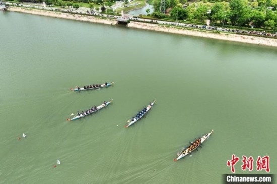 當(dāng)日,豐祥湖上鑼鼓喧天,隊(duì)員們揮汗如雨,奮楫向前。