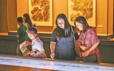 北京大運(yùn)河博物館“北京與大運(yùn)河歷史文化陳列”展廳內(nèi),觀眾在觀看展品。本報(bào)記者 張武軍攝