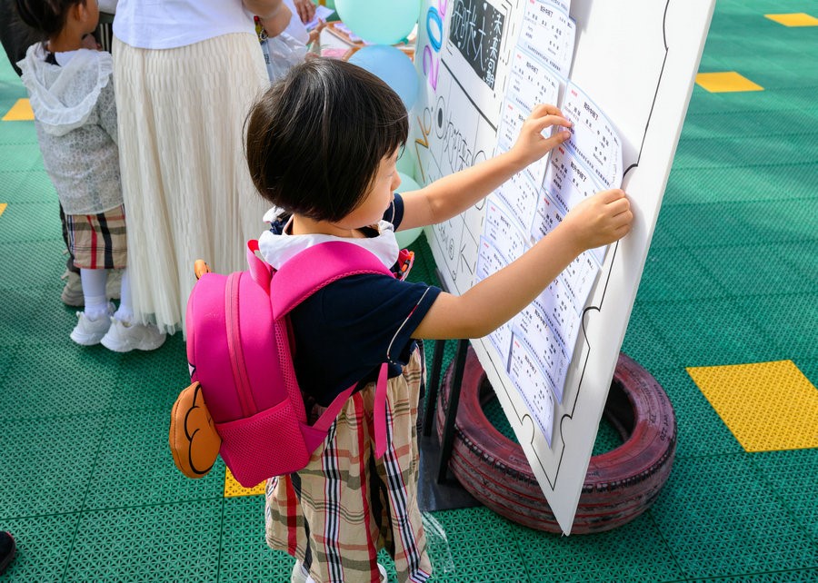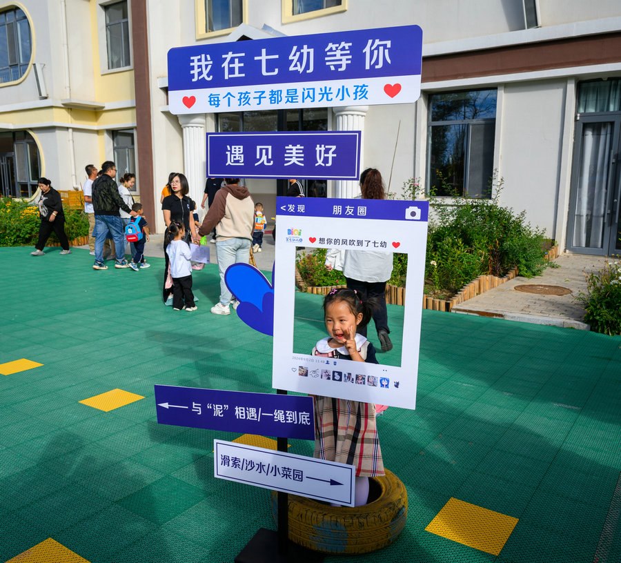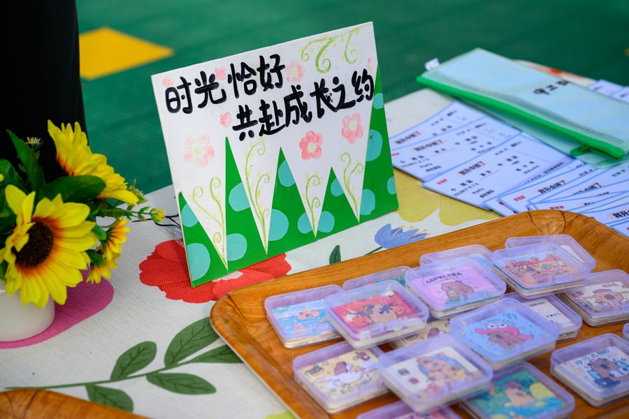 小朋友在家長的陪伴下,興高采烈走進(jìn)校園內(nèi)各個(gè)打卡地,打卡蓋章、拍照留念。