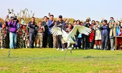 在河北秦皇島市鴿子窩公園,國(guó)家保護(hù)鳥(niǎo)類(lèi)被放歸自然時(shí),市民紛紛拍照記錄。新華社發(fā)