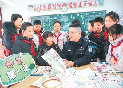 2月18日,在江蘇省如皋市下原鎮(zhèn)花園小學,派出所民警通過知識普及、主題手抄報等形式,引導小學生科學、文明、安全上網。