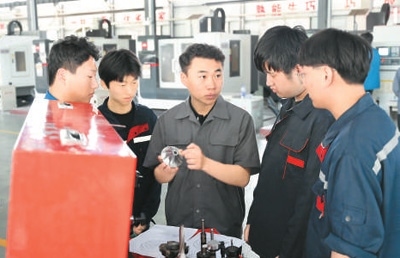 走進學(xué)校8200多平方米的機械工程實訓(xùn)中心,轟鳴聲不絕于耳,300多臺套機床設(shè)備齊整整地排開。這里,藏著一個“校中廠”——學(xué)校與中品智能機械有限公司合作,將企業(yè)的真實生產(chǎn)過程引入校園。在企業(yè)派駐技師指導(dǎo)下,學(xué)生就能直接上手加工訂單零件。