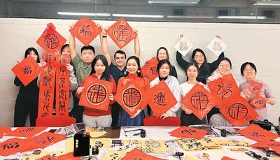 書畫社推動(dòng)了中國(guó)文化在校園里的傳播。秦思涵說:“今年除夕夜,我們?cè)趯W(xué)校擺攤賣春聯(lián)時(shí)發(fā)生了一件事情。一名女生問我,能否為她和她的室友們寫一副春聯(lián),里面包含她們的中文名字。有一名女孩不知道自己中文名字叫什么。她是一名扇舞舞者,我想了很久,為她起了名字‘葉舞翎’,并將其融入了春聯(lián)祝福。春聯(lián)寫好后,我們每個(gè)人都很開心。這樣的小事還有很多,越來(lái)越多人對(duì)我們的文化感興趣?!?/p>