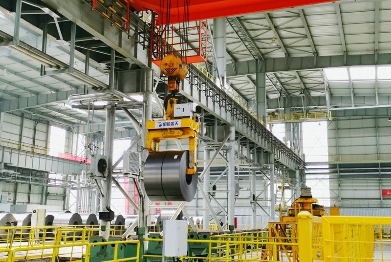 7月13日,內(nèi)蒙古包鋼全自動智慧工廠——包鋼集團金屬制造公司冷軋軋后庫內(nèi),吊運裝備正在對鋼卷進(jìn)行吊運入庫。這家智慧工廠,共有6臺行車、5組步進(jìn)梁、1組托盤運輸鏈和1臺過跨轉(zhuǎn)運平車。這座工廠采用的無人行車及智能庫管系統(tǒng),能夠通過模型算法實現(xiàn)行車智能調(diào)度、路徑規(guī)劃、垛位分配、自動避障、多車協(xié)作等功能,智能化完成5條生產(chǎn)線所生產(chǎn)鋼卷的下線入庫、上線出庫、庫內(nèi)倒垛等,實現(xiàn)軋后庫內(nèi)所有行車和地面設(shè)備的自動全無人作業(yè)和物料的實時跟蹤,是一座真正的24小時不用開燈的無人作業(yè)工廠。