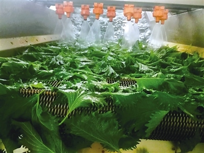 在紫蘇基地加工車間,20多名工人正在熱火朝天地忙碌著,采摘好的紫蘇葉在這里經(jīng)過清洗、精選、包裝等多道工序處理后,會按照不同品級進行精細化捆扎分類,然后被送入冷庫進行預(yù)冷,整個操作都是在無菌環(huán)境下進行。“現(xiàn)在臨時工、長期工加一起有20多人,5年來,我們在七圪臺村、什不斜氣村、什拉烏素村等周邊培訓(xùn)了村民200人左右,他們每年農(nóng)閑時就會來基地打工,男工負責(zé)大棚管理、種植,女工負責(zé)采葉子、分葉子、包葉子?!卑合蛴浾呓榻B道。