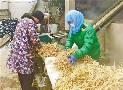 當(dāng)?shù)剞r(nóng)戶正在加工黃芪。
