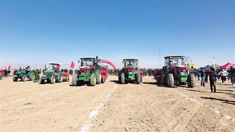 3月2日上午,2022年全區(qū)“春播第一耬”暨大豆玉米帶狀復(fù)合種植機具演示現(xiàn)場會在巴彥淖爾市杭錦后旗雙廟鎮(zhèn)增光村“萬畝綠色小麥?zhǔn)痉痘亍迸e行,由此拉開了河套灌區(qū)春小麥播種工作的序幕,也標(biāo)志著全區(qū)小麥春播從巴彥淖爾市開始由西向東陸續(xù)展開。