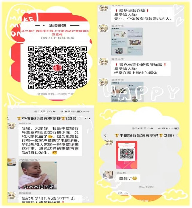 近期,受到疫情影響,中信銀呼和浩特分行創(chuàng)新“非接觸式”宣傳方式,積極開(kāi)展防范電信詐騙宣教活動(dòng),制定專(zhuān)項(xiàng)活動(dòng)方案,針對(duì)不同群體開(kāi)展多樣化的金融知識(shí)宣傳,提升公眾風(fēng)險(xiǎn)防范意識(shí),積極履行社會(huì)責(zé)任。