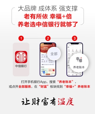 面對(duì)萬億規(guī)模個(gè)人養(yǎng)老金新藍(lán)海,銀行、基金、保險(xiǎn)等各類型金融機(jī)構(gòu),正加速布局。作為國內(nèi)最早推出年長客戶專屬服務(wù)的商業(yè)銀行,中信銀行始終關(guān)注并積極落實(shí)“應(yīng)對(duì)人口老齡化”的國家戰(zhàn)略,打造了包含“一個(gè)賬戶、一套產(chǎn)品、一個(gè)賬本、一套服務(wù)、一支隊(duì)伍、一份報(bào)告”六大支撐的養(yǎng)老金融服務(wù)體系,并推出“幸福+”養(yǎng)老賬本一站式養(yǎng)老金融服務(wù)平臺(tái),以實(shí)際行動(dòng)響應(yīng)國家號(hào)召、履行社會(huì)責(zé)任、助力第三支柱個(gè)人養(yǎng)老金制度實(shí)施落地。