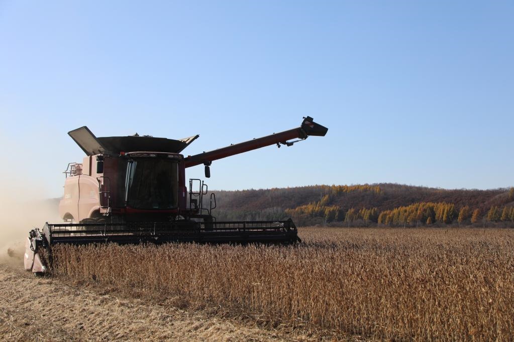 今年秋收,北大荒集團(tuán)錦河農(nóng)場有限公司大豆收獲現(xiàn)場。新華社記者 黃騰 攝