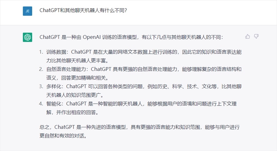 問(wèn):“ChatGPT和其他聊天機(jī)器人有什么不同?”