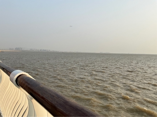 飛機(jī)飛過濱海驛站上空。人民網(wǎng)記者 趙雯攝