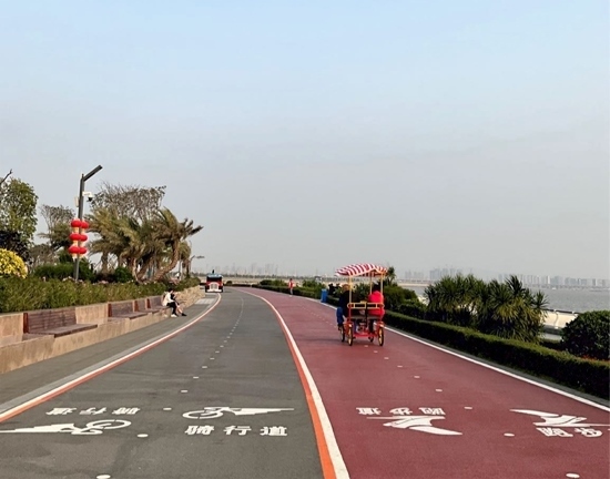 人民網(wǎng)東莞2月22日電 (記者趙雯 薛艷艷)濱海驛站坐落于廣東省東莞市濱海灣新區(qū),是東莞濱海長(zhǎng)廊首個(gè)建成的重要節(jié)點(diǎn),緊靠海岸線,南臨前海,隔海眺望南沙自貿(mào)區(qū)、中山翠亨新區(qū)。立于驛臺(tái)前,海風(fēng)習(xí)習(xí)拂來,海天一線,日落降臨,浮光躍金。濱海驛站周邊建有廣場(chǎng)平臺(tái)、自行車道、沿海步道和園林綠化。濱海灣新區(qū)未來規(guī)劃建設(shè)一條長(zhǎng)約40余公里的濱海長(zhǎng)廊,以“運(yùn)動(dòng)廊+人文鏈+活力岸”為建設(shè)目標(biāo),打造生態(tài)海堤,不僅為游客提供親水體驗(yàn),同時(shí)也為鳥類、兩棲類動(dòng)物提供生境及遷徙通廊。