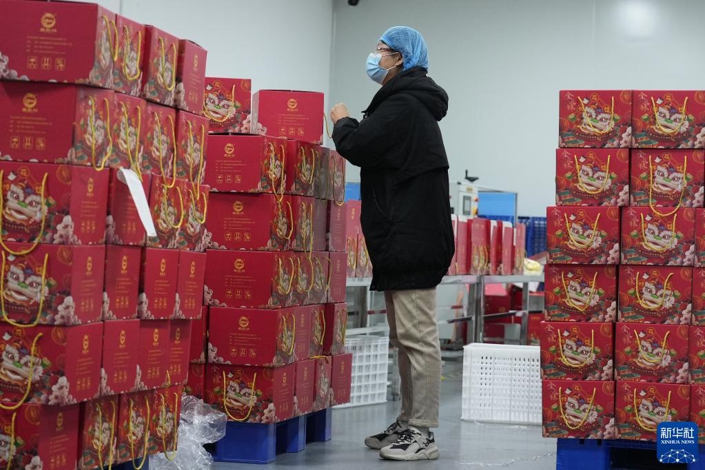 2月17日,威海長(zhǎng)林生態(tài)農(nóng)業(yè)有限公司員工清點(diǎn)即將發(fā)運(yùn)的花餑餑產(chǎn)品。新華社記者 朱崢 攝