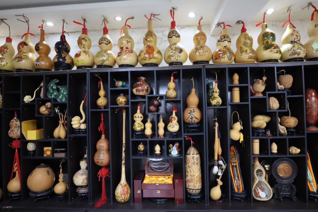 隨著私人訂制需求激增,當?shù)刂鸩綇暮J加工產(chǎn)業(yè)向文化創(chuàng)意產(chǎn)業(yè)轉(zhuǎn)換,嘗試將葫蘆開發(fā)生產(chǎn)成樂器、酒具、藥具、煙具、蟲具、花瓶……“買葫蘆除了挑工藝,還得看眼緣,看起來長得奇形怪狀的葫蘆說不定能賣得很貴。”王士濱說。