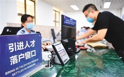 外省人員在海南省??谑泄簿置捞m分局人口和出入境管理服務(wù)中心辦理人才落戶業(yè)務(wù)。 新華社記者 郭 程攝