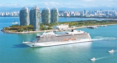 郵輪從三亞鳳凰島國際郵輪港離港出海。葉龍斌攝(影像中國)