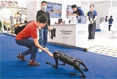 第三屆中國(guó)國(guó)際消費(fèi)品博覽會(huì)科技感十足,參展的各家中國(guó)企業(yè)將“科技感”滿滿的產(chǎn)品展示出來(lái),讓觀眾在消博會(huì)上與前沿的國(guó)產(chǎn)科技零距離接觸,體驗(yàn)國(guó)產(chǎn)“黑科技”。圖為4月13日,觀眾跟科大訊飛展出的機(jī)器狗互動(dòng)。新華社記者 楊冠宇攝
